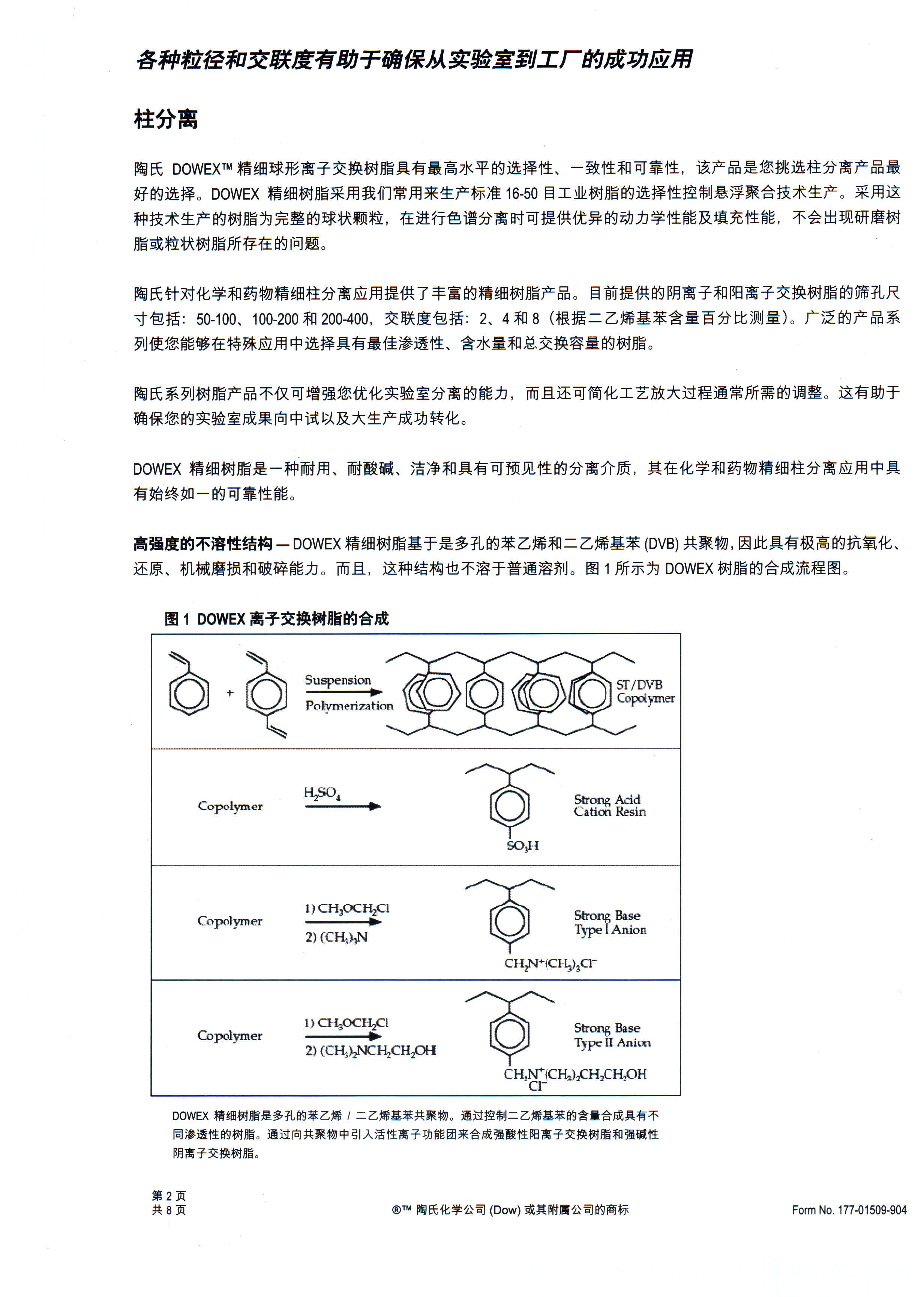 DOWEX50W×8-2 | DOWEX50W×8強酸性陽離子交換樹脂,100-200目 |