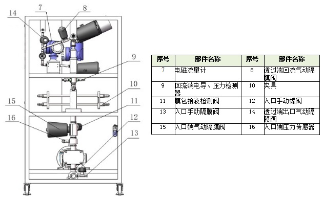 2) 配備流量、溫度等傳感器,可在線計算通量、濃縮因子;
