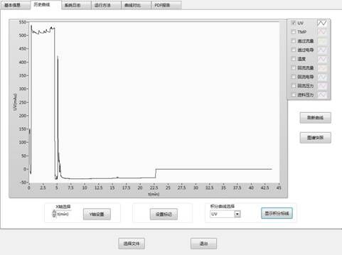 6) 可根據工藝要求在系統中靈活配置流量、溫度、電導率、pHUV等在線檢測器,實時記錄運行曲線;